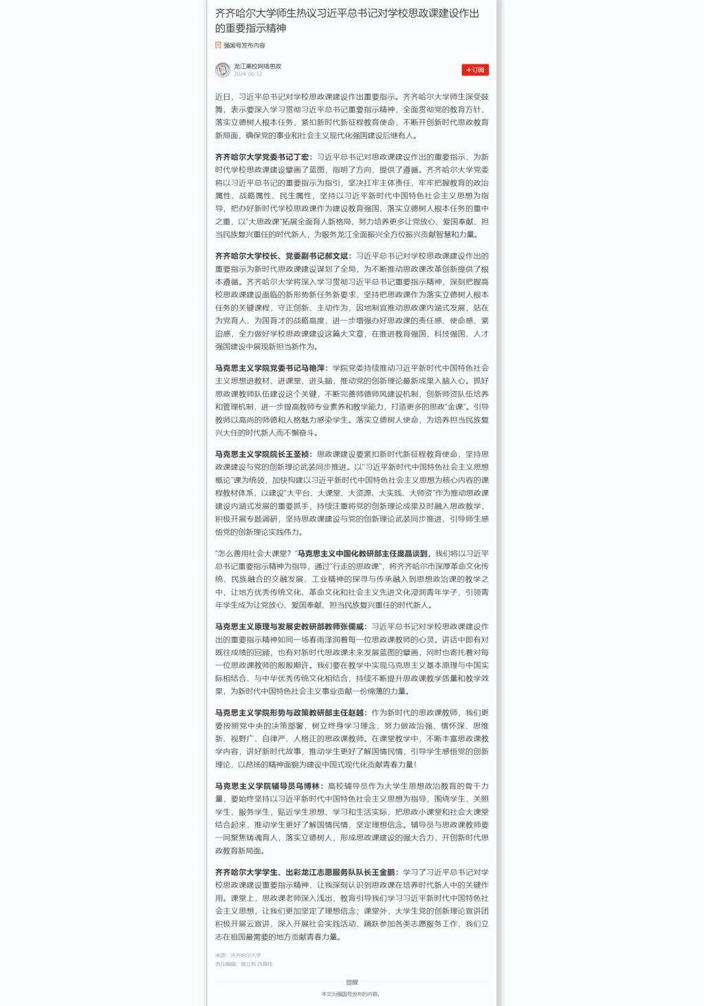 下一條:【學習強國】齊齊哈爾大學師生熱議習近平總書記對學校思政課建設(shè)作出的重要指示精神