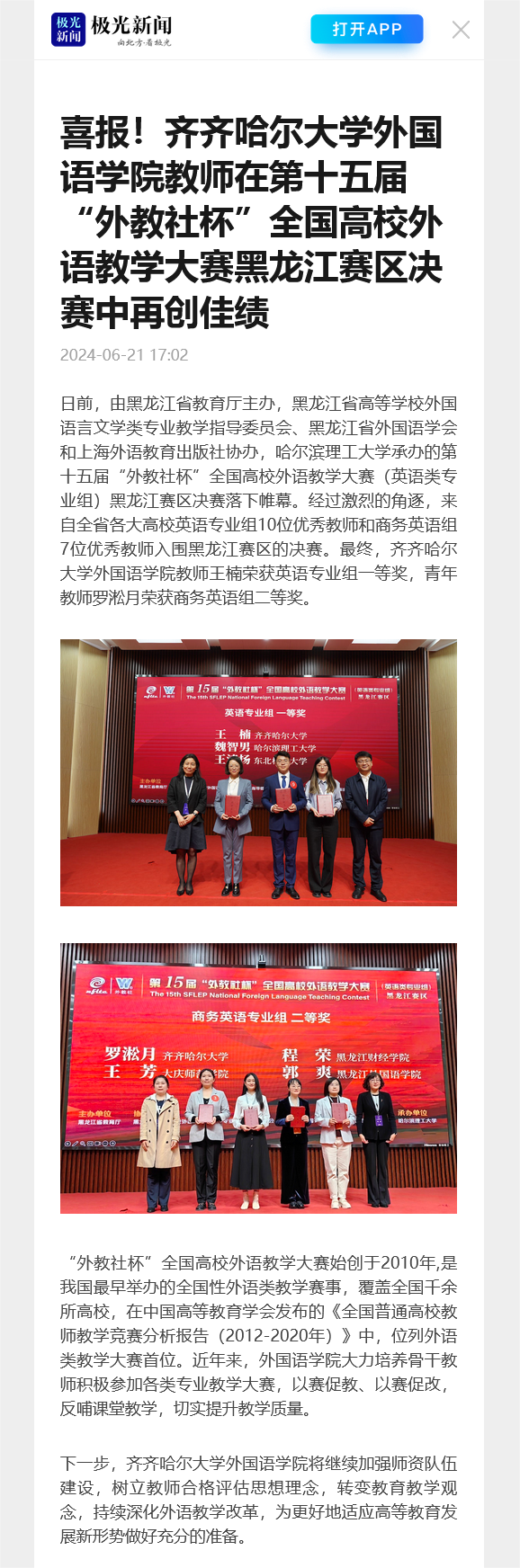 下一條:【極光新聞】喜報(bào)!齊齊哈爾大學(xué)學(xué)生在第五屆全國師范生微課大賽中獲得佳績(jī)