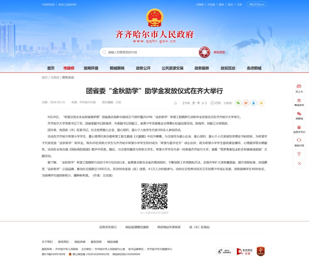 下一條:【新華網(wǎng)】“金秋助學(xué)”希望工程圓夢行動(dòng)舉行 4000余名困境學(xué)生得到資助