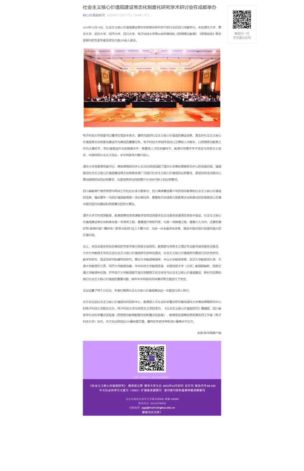 上一條:【新華網(wǎng)】社會主義核心價(jià)值觀建設(shè)常態(tài)化制度化研究學(xué)術(shù)研討會在成都舉辦