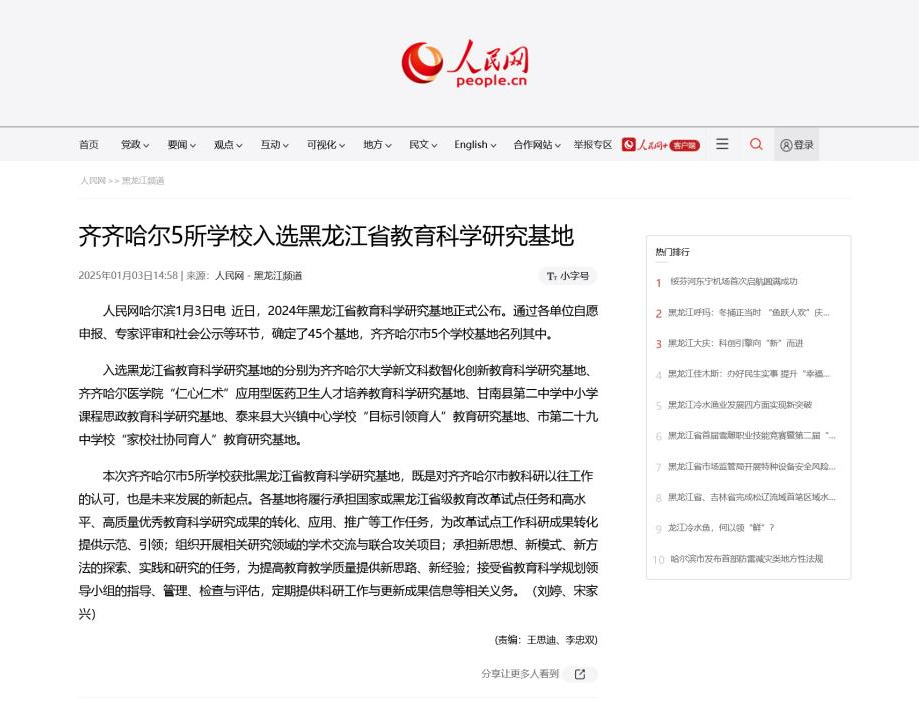 下一條:【新華網】齊齊哈爾市五所學校入選黑龍江省教育科學研究基地