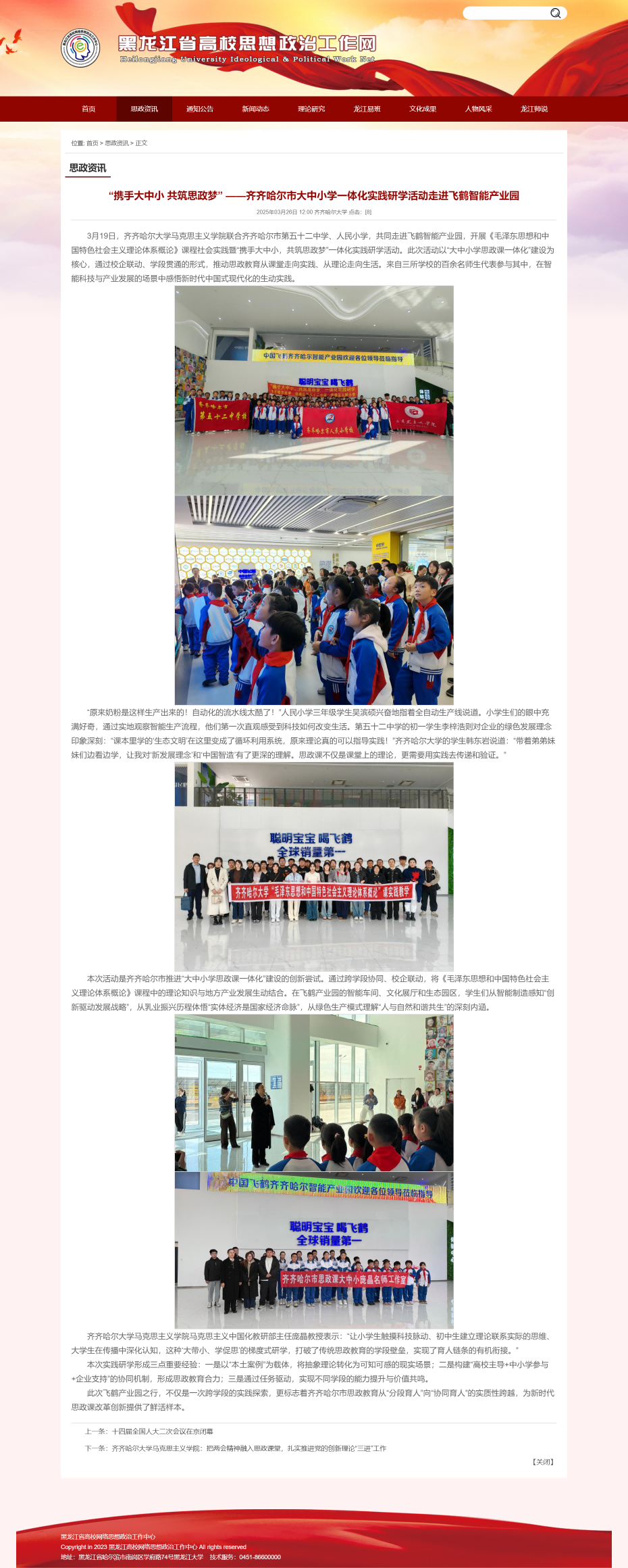 下一條:【黑龍江省高校思想政治工作網(wǎng)】齊齊哈爾大學(xué)馬克思主義學(xué)院:把兩會(huì)精神融入思政課堂,扎實(shí)推進(jìn)黨的創(chuàng)新理論“三進(jìn)”工作