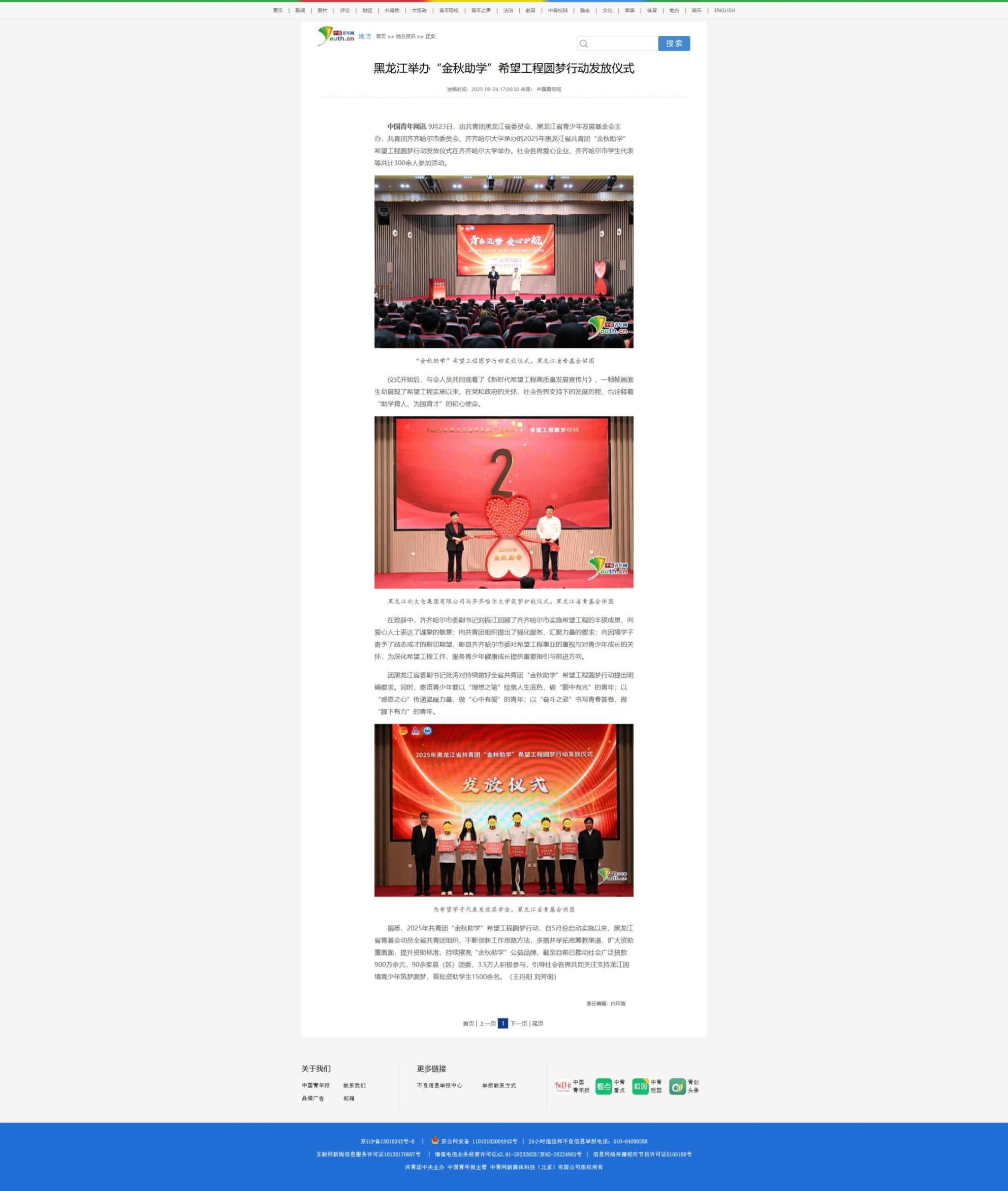 下一條:【黑龍江日?qǐng)?bào)】“金秋助學(xué)”希望工程圓夢(mèng)行動(dòng)舉行助學(xué)金發(fā)放儀式