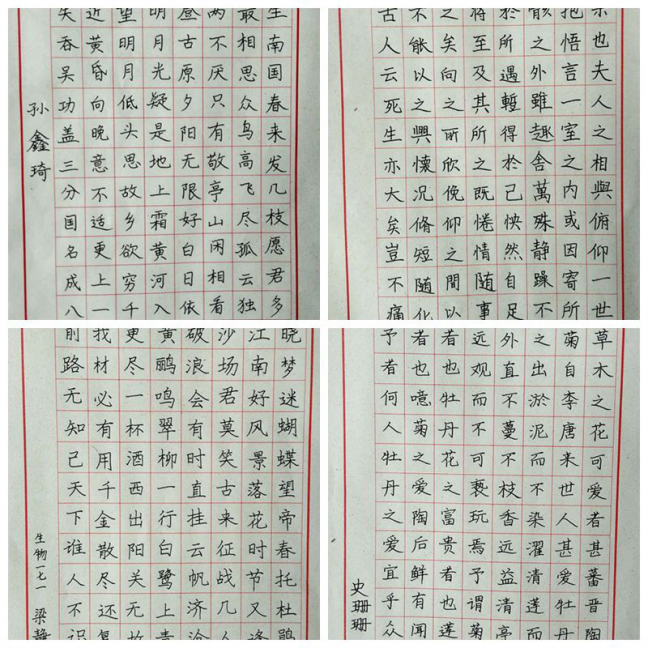 我院歷來高度重視生物科學(xué)師范生教學(xué)技能和“三筆字”書寫技能培訓(xùn)工作。我院聘請中國書畫院一級美術(shù)師、齊齊哈爾市書法家協(xié)會理事、高級實(shí)驗(yàn)師呂建偉老師作為課外輔導(dǎo)教師。呂老師始終以高度的責(zé)任心和使命感,精心組織和安排師范生的“三筆字”課外輔導(dǎo)工作。自今年開學(xué)初學(xué)校建成“三筆字”書法教室后,呂老師配合學(xué)校開設(shè)的《書寫技能》課程,利用自己業(yè)余時(shí)間,對我院2017級生物科學(xué)師范生進(jìn)行了為期兩個(gè)月的課外輔導(dǎo),受到了顯著的成效。
