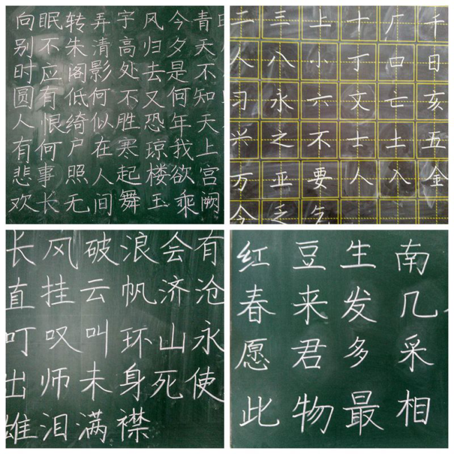 本次比賽分粉筆字組和鋼筆字組,參賽選手們紛紛展示了各自書法的表現(xiàn)風(fēng)格和書寫能力。既有一氣呵成、筆畫遒勁、筆勢生動的粉筆字書法,也有錯(cuò)落有致、剛?cè)岵?jì)的鋼筆字書法。經(jīng)過激烈的角逐,粉筆字組的孫佳藝、李想、白小麗,鋼筆字組的韓靜鑫、陳鏡屹、史珊珊分別獲得本次比賽各組別的一等獎(jiǎng)。本次比賽,為學(xué)生搭建一個(gè)鍛煉自己、展示風(fēng)采的平臺。