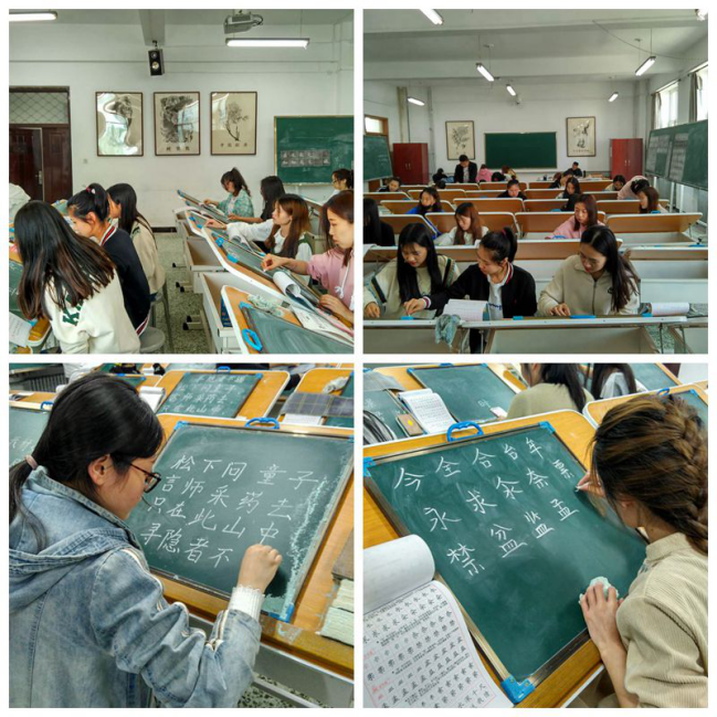 為迎接師范專業(yè)二級認(rèn)證,進(jìn)一步提高我院師范學(xué)生書法書寫能力,我院穩(wěn)步推進(jìn)師范生“三筆字”培訓(xùn)工作,取得顯著成績。5月8日下午,在西主335書法教室,我院舉行了粉筆字和鋼筆字書法比賽,共82名學(xué)生參加此次比賽。