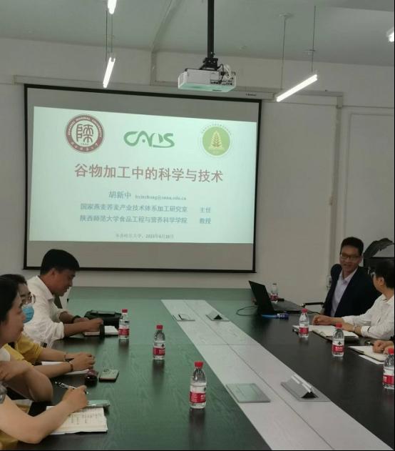 在會(huì)上,胡新中教授首先介紹了陜西師范大學(xué)食品工程與營(yíng)養(yǎng)科學(xué)學(xué)院及其團(tuán)隊(duì)的基本情況,隨后毫無(wú)保留地分享了其在谷物加工方面的寶貴經(jīng)驗(yàn),尤其就燕麥?zhǔn)称芳庸づc技術(shù)創(chuàng)新、蕎麥功能食品加工與技術(shù)創(chuàng)新、小麥面制主食加工技術(shù)創(chuàng)新、天然乳化劑多糖構(gòu)效關(guān)系、谷物加工中抗性淀粉形成等相關(guān)方面的研究方法和研究成果進(jìn)行了詳細(xì)全面的介紹。最后,胡新中教授就如何從生產(chǎn)中發(fā)現(xiàn)“科學(xué)問題”、如何有效實(shí)現(xiàn)科技成果轉(zhuǎn)移轉(zhuǎn)化等方面做了詳細(xì)的闡述。