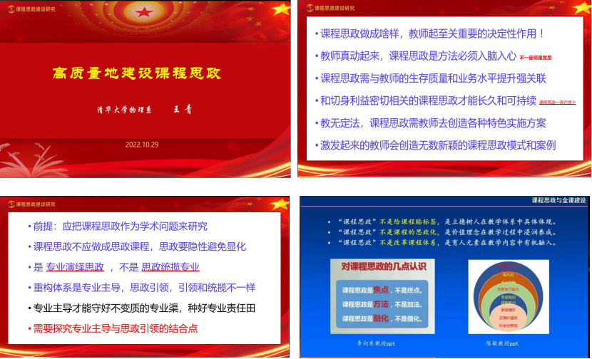 視頻中,王青教授圍繞“如何使教師的課程思政入腦入心,怎樣發(fā)揮專業(yè)主導作用,堅持思政與專業(yè)的實質性融合的關鍵,如何在課程教學中開展課程思政”等方面做了詳細的指導。