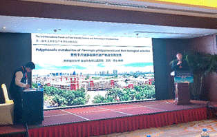 會議期間,王巖教授應邀作《Polyphenolic metabolites off lemingia philippinensisand their biological activities》為主題的學術報告。王巖教授以自身科學研究領域為內(nèi)容,重點介紹了我院在植物性食品加工領域取得的主要成績,從成果技術優(yōu)勢、產(chǎn)品開發(fā)情況及科研產(chǎn)出等方面做了全面匯報,講解內(nèi)容引起了與會專家學者和企業(yè)人士的興趣和好評。