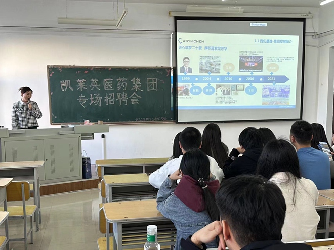 招聘會開始時,李陽首先介紹了集團(tuán),這讓我院學(xué)生了解到凱萊英醫(yī)藥集團(tuán)是一家全球領(lǐng)先、技術(shù)驅(qū)動型的CDMO一站式綜合服務(wù)商。該集團(tuán)為國內(nèi)外的制藥公司、Biotech公司提供藥品全生命周期的一站式CMC服務(wù)、高效和高質(zhì)量的研發(fā)與生產(chǎn)服務(wù),加快創(chuàng)新藥的臨床研究與商業(yè)化應(yīng)用。