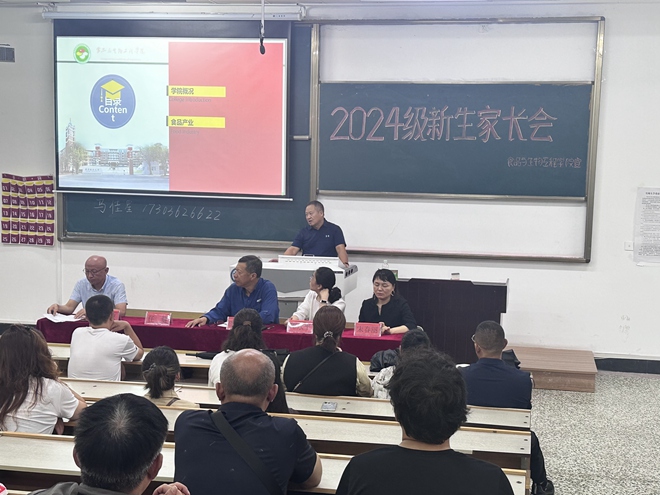 任健從學(xué)院的師資力量、重大科研項(xiàng)目切入,為家長(zhǎng)們呈現(xiàn)食品與生物工程學(xué)院雄厚的教學(xué)能力。同時(shí),任健重點(diǎn)強(qiáng)調(diào)了國(guó)家對(duì)于食品行業(yè)的重視程度、食品產(chǎn)業(yè)地位、食品相關(guān)上下游行業(yè)的人才需求以及本院各專業(yè)的就業(yè)方向及前景,使家長(zhǎng)們對(duì)于食品學(xué)院各專業(yè)有了更深入的了解。最后,正處級(jí)輔導(dǎo)員馬金權(quán)結(jié)合輔導(dǎo)員工作的九大職責(zé),向家長(zhǎng)介紹了輔導(dǎo)員工作需要家長(zhǎng)了解和配合的方面,并且通過案例,向?qū)W生家長(zhǎng),重點(diǎn)強(qiáng)調(diào)關(guān)注學(xué)生心理健康、如何預(yù)防網(wǎng)絡(luò)詐騙、學(xué)生沉迷游戲的危害。對(duì)需要家長(zhǎng)了解的有關(guān)學(xué)生管理、學(xué)業(yè)問題、校規(guī)校紀(jì)做了介紹,還介紹了國(guó)家設(shè)立的貧困生獎(jiǎng)助學(xué)金、校友設(shè)立的“墨林發(fā)展獎(jiǎng)學(xué)金”、企業(yè)設(shè)立的“一鳴啟智獎(jiǎng)學(xué)金”等獎(jiǎng)勵(lì)和資助政策。